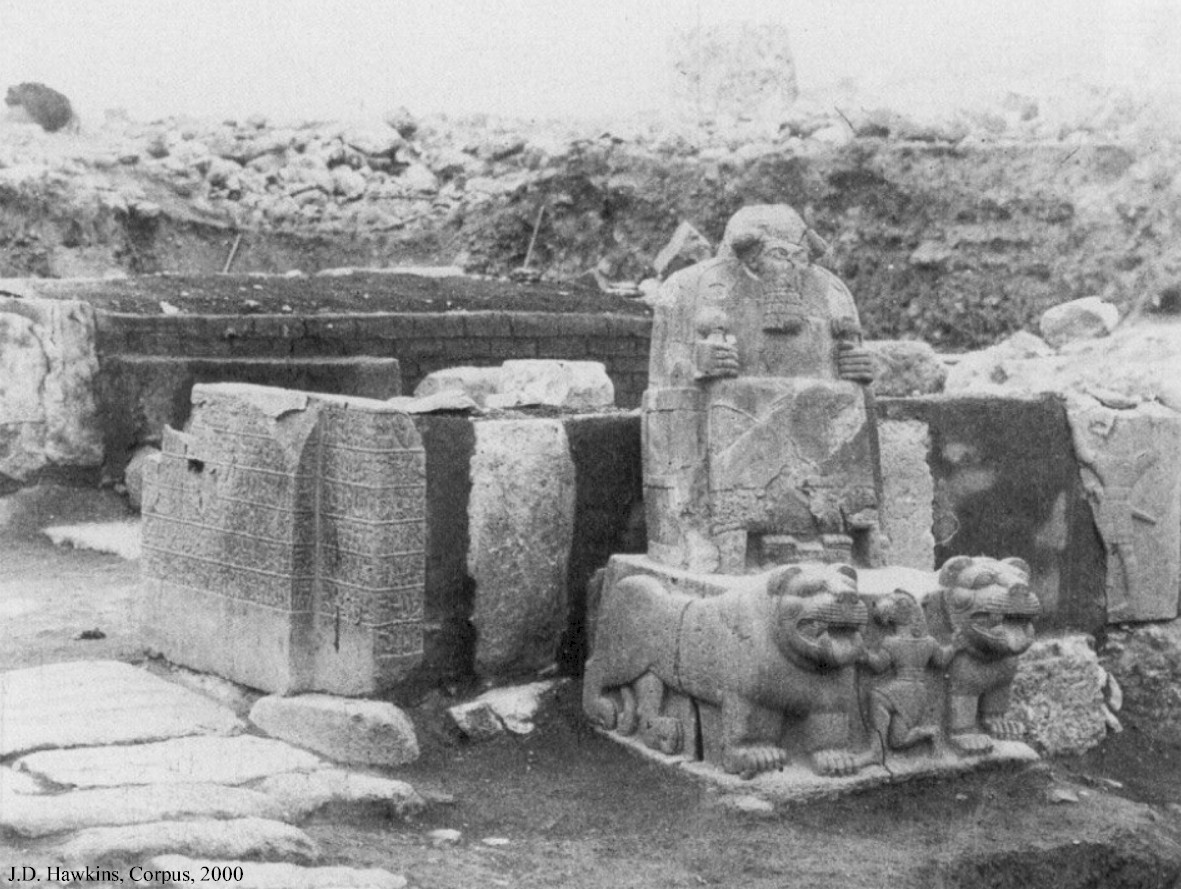HOME - KARKAMIŞ TÜRKÇE Atrisuha Statue The basalt statue is about 1.6 m in height. The inscription (KARKAMIŠ A4d) at the hem of the seated figure's robe mentions the name Atrisuha which may mean "soul of Suhi" and represent the dead king Suhi I or II. It was located at the King's Gate in Karkamış. The base and statue were smashed during the years of the First World War. The inscription is a curse against those who do not make offerings to the deity. Fragments of the heavily damaged top section are currently at the museum depot in Ankara. It dates to the reign of Katuwa in the 10th or early 9th century BCE. The base can be seen in the Anatolian Civilizations Museum, Ankara. |