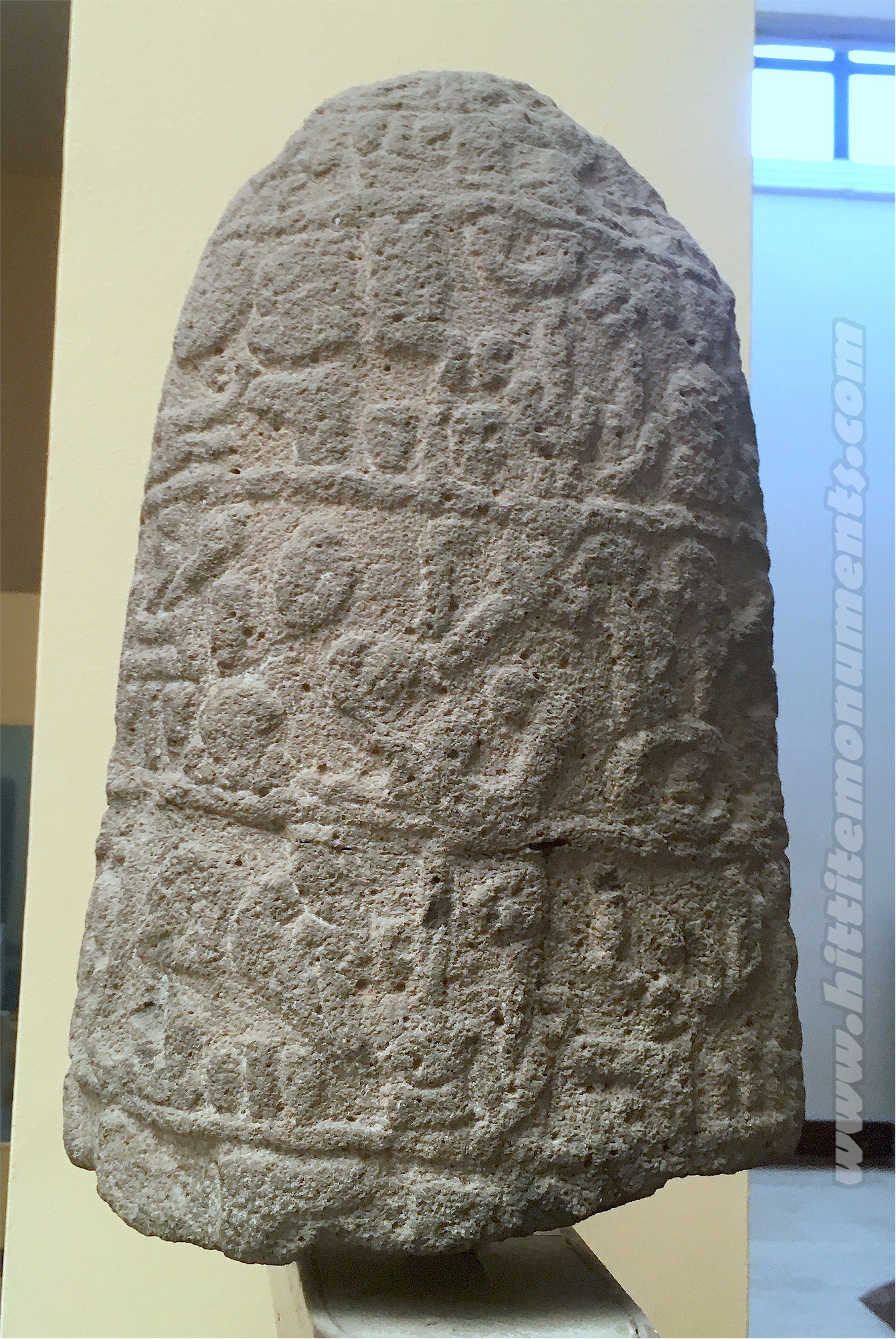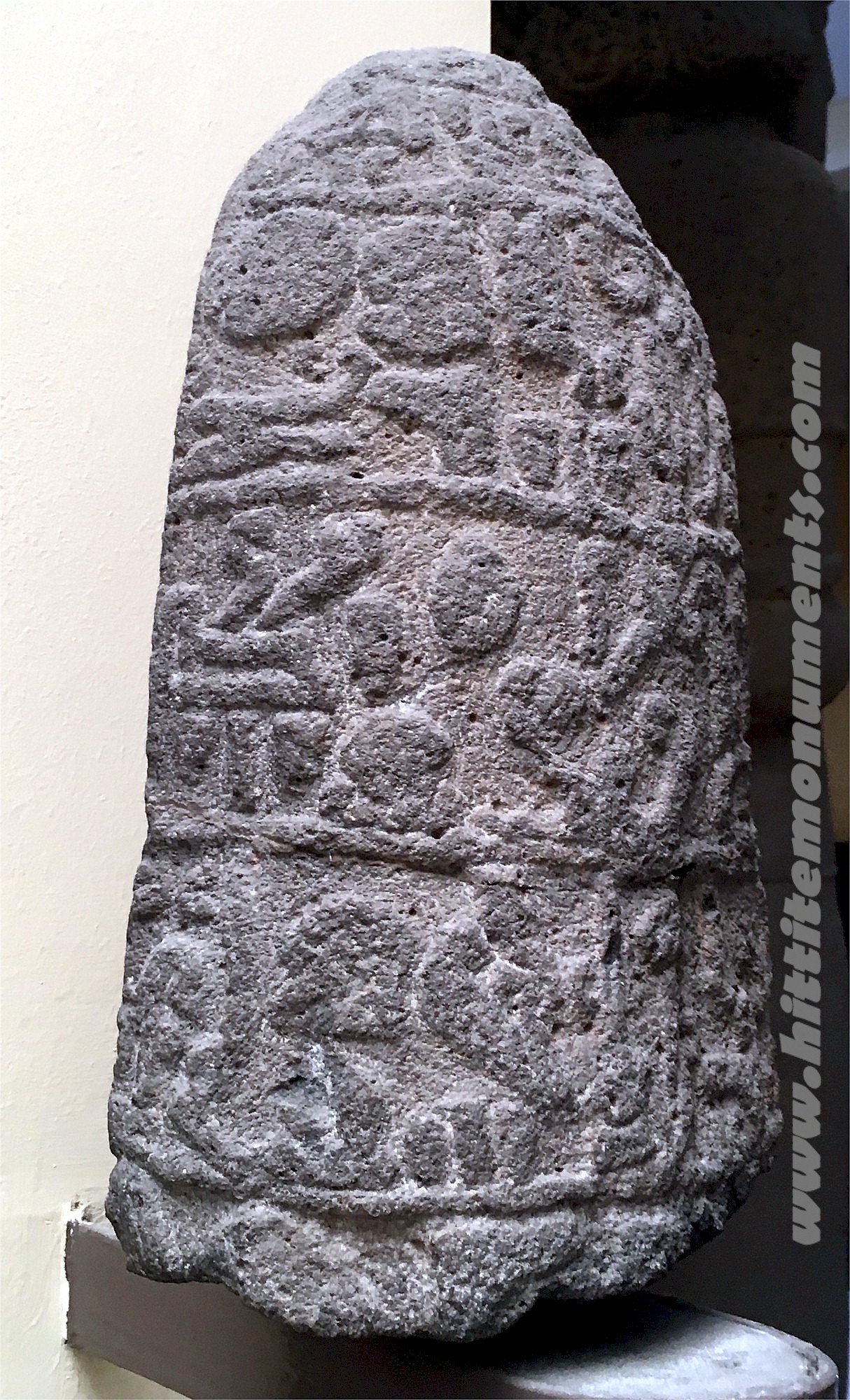 HOME - MARAŞ TÜRKÇE Stele fragment The fragment is the bottom part of a monumental stele, possibly intended to be in the shape of a grinding stone, dedicated for a granary by a person named Larama. The stele was sent from İskenderun to the İstanbul Museum in the 1880s, but the find place was not noted. The fragment is about 35 cm in height and 22 cm in width and preserves the last 4 lines of the inscription. Three rulers named Larama of the city of Gurgum are known from Maraş inscriptions. Since philological clues suggest a later date than earlier, he might be identified as Larama II or perhaps Larama III. The stele is in the Istanbul Archaeology Museum. |